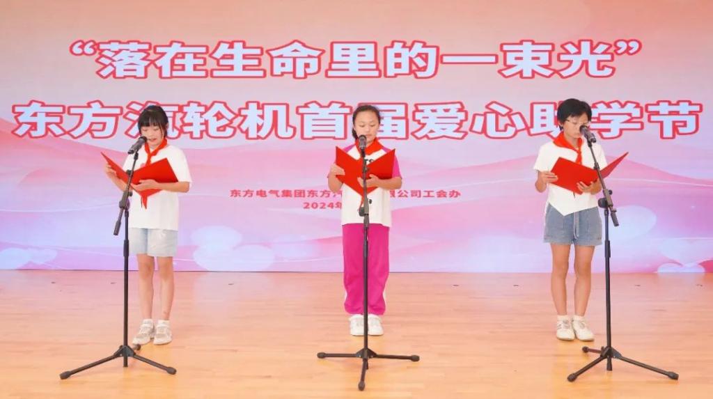 “2011年的那天,您们,一群东汽的‘蓝精灵’,来到了我们的身旁,用热情的双手为我们撑起了梦想的天空……”在2024“东方汽轮机爱心助学节”上,当学生们稚嫩而真挚的声音在舞台上响起,台下怀抱着“一致向善爱心助学先进单位”奖状的东方汽轮机隔板分厂职工李俊松感慨万千,思绪再次回到了14年前。
